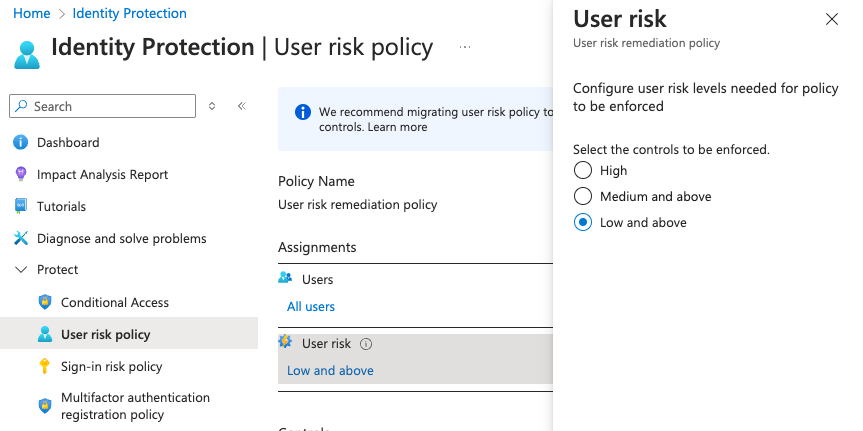 Entra Identity Protection is a security service that allows to detect when a user or a sign-in is too risky to be accepted, allowing to block the user or the sig-in attempt.