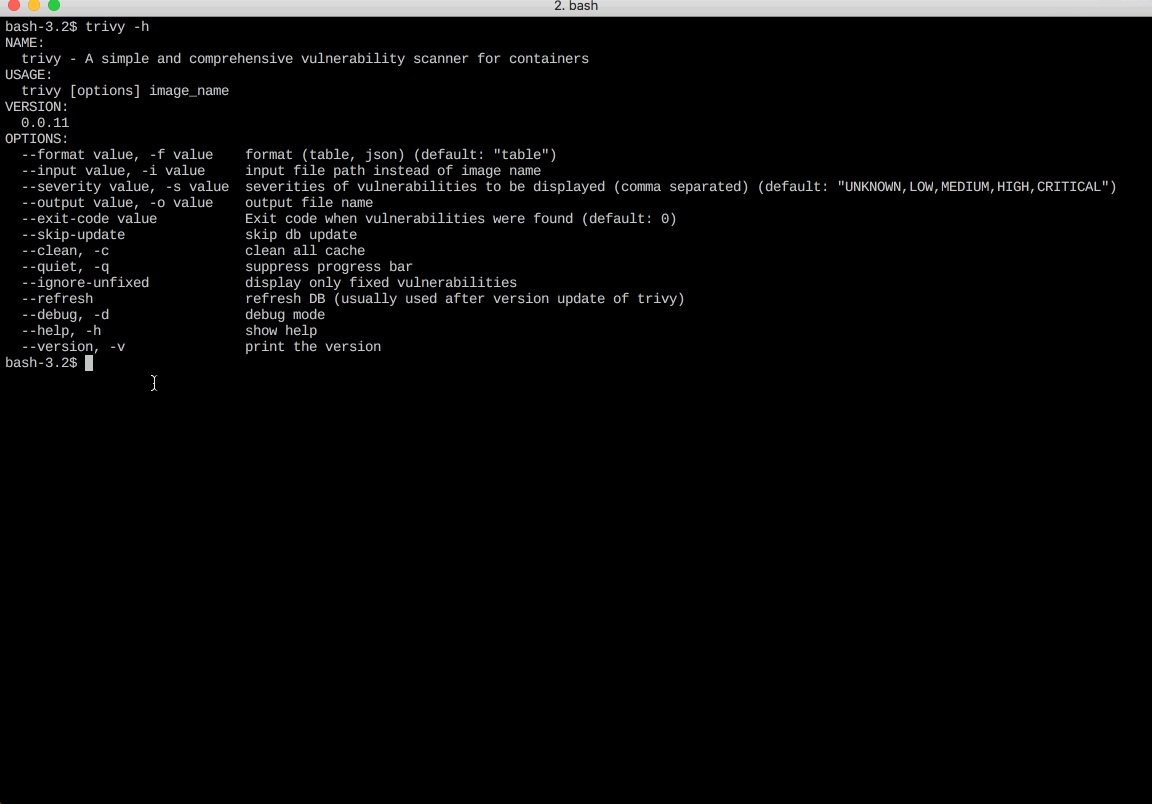 $ sudo dpkg -i trivy_{TRIVY_VERSION}_Linux-64bit.deb
